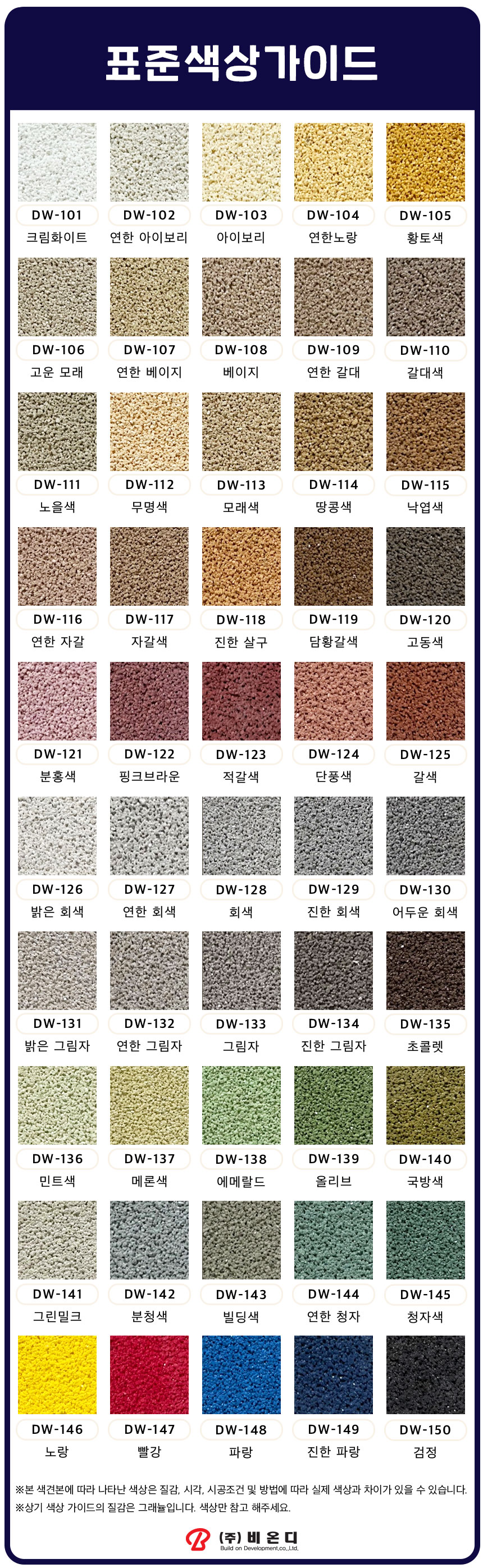 - 본 제품의 색상은 시공조건, 질감, 시각에 따라 색상에 차이가 있을 수 있습니다.